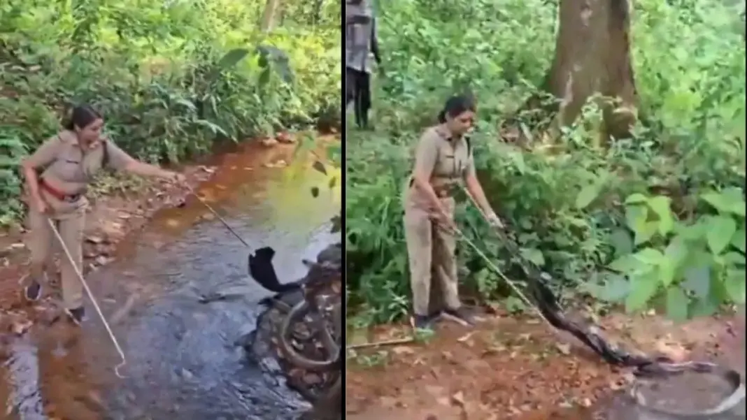18 ಅಡಿ ಉದ್ದದ ಕಿಂಗ್‌ ಕೋಬ್ರಾವನ್ನು ರಕ್ಷಣೆ ಮಾಡಿದ ಮಹಿಳಾ ಅರಣ್ಯಾಧಿಕಾರಿ