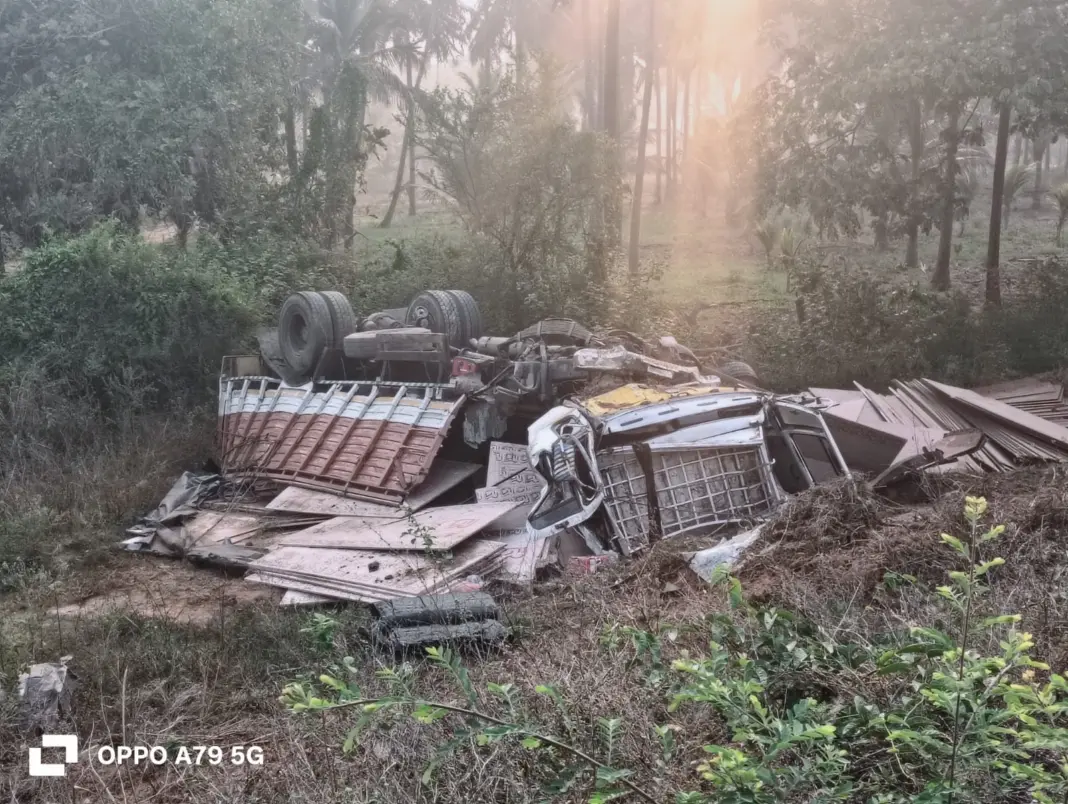 ಪ್ಲೈವುಡ್ ತುಂಬಿದ್ದ ಲಾರಿ ವೇಗವಾಗಿ ಬರುತ್ತಿದ್ದಾಗ ನಿಯಂತ್ರಣ ತಪ್ಪಿ ರಸ್ತೆ ಬದಿಗೆ ಪಲ್ಟಿಯಾಗಿದೆ ಎನ್ನಲಾಗಿದೆ.