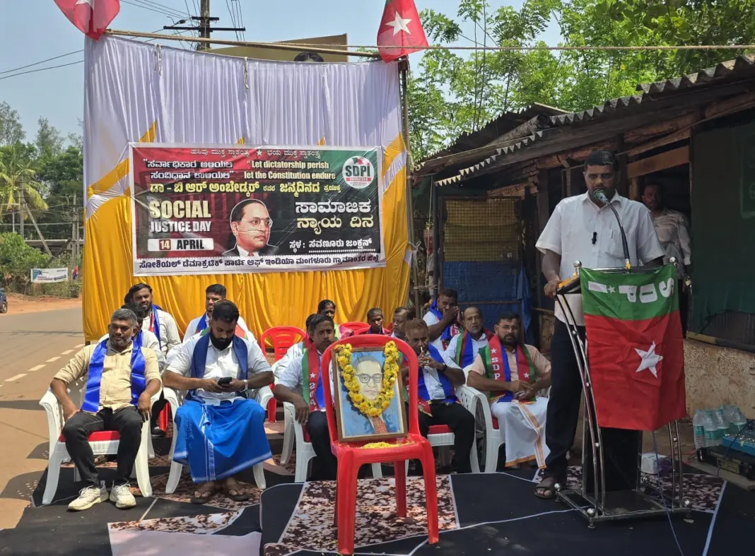 ಸವಣೂರು: ಸೋಶಿಯಲ್ ಡೆಮಾಕ್ರಟಿಕ್ ಪಾರ್ಟಿ ಆಫ್ ಇಂಡಿಯಾ ಮಂಗಳೂರು ಗ್ರಾಮಾಂತರ ಜಿಲ್ಲಾ ಸಮಿತಿ ವತಿಯಿಂದ 134 ನೇ ಅಂಬೇಡ್ಕರ್ ಜಯಂತಿ ಅಂಗವಾಗಿ ಸುಳ್ಯ ವಿಧಾನಸಭಾ ಕ್ಷೇತ್ರದ ಸವಣೂರಿನಲ್ಲಿ ಜಿಲ್ಲಾ ಉಪಾಧ್ಯಕ್ಷರಾದ ಇನಾಸ್ ರೋಡ್ರಿಗಸ್‌ರವರ ಸಭಾಧ್ಯಕ್ಷತೆಯಲ್ಲಿ “ಸರ್ವಾಧಿಕಾರ ಅಳಿಯಲಿ, ಸಂವಿಧಾನ ಉಳಿಯಲಿ” ಎಂಬ ಘೋಷಣೆಯೊಂದಿಗೆ ಸಾಮಾಜಿಕ ನ್ಯಾಯ ದಿನಾಚರಣೆಯನ್ನು ಆಚರಿಸಲಾಯಿತು.