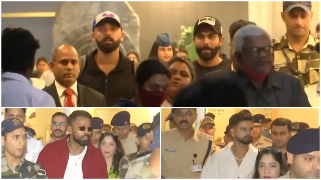 ರವೀಂದ್ರ ಜಡೇಜಾ, ವರುಣ್​​ ಚಕ್ರವರ್ತಿ ಚೆನ್ನೈ ಅಂತಾರಾಷ್ಟ್ರೀಯ ವಿಮಾನ ನಿಲ್ದಾಣ, ಅಕ್ಷರ್​ ಪಟೇಲ್​​ ಗುಜರಾತ್​​ ವಿಮಾನ ನಿಲ್ದಾಣ, ವೇಗದ ಬೌಲರ್​ ಹರ್ಷಿತ್​ ರಾಣಾ ದೆಹಲಿ ವಿಮಾನ ನಿಲ್ದಾಣಕ್ಕೆ ಬಂದಿಳಿದರು.